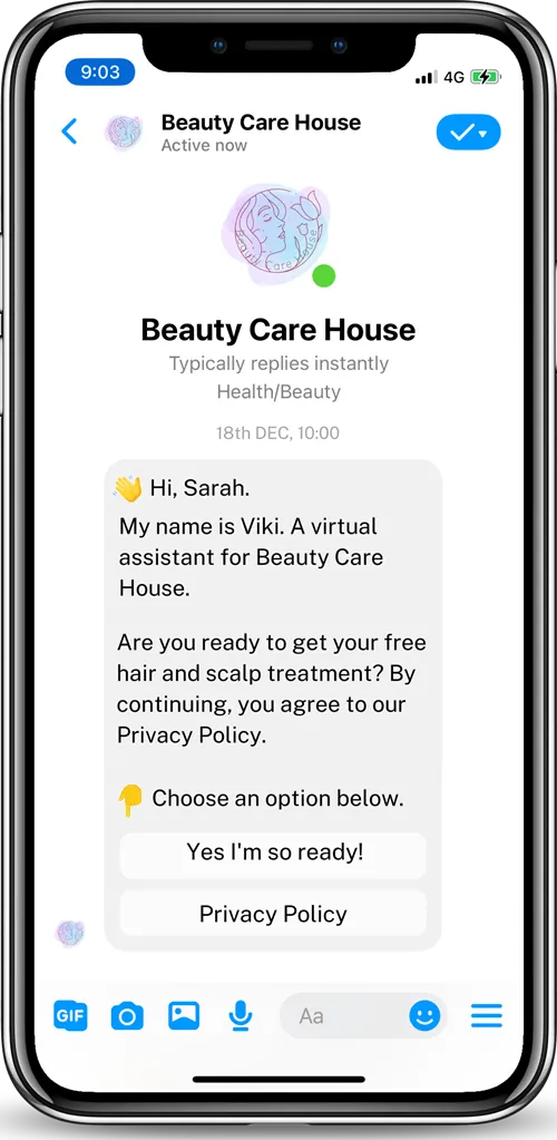 With Manychat, you can easily connect with your ideal clients on Facebook Messenger, Instagram and TikTok, offering fast, meaningful conversations that build loyalty and drive bookings.